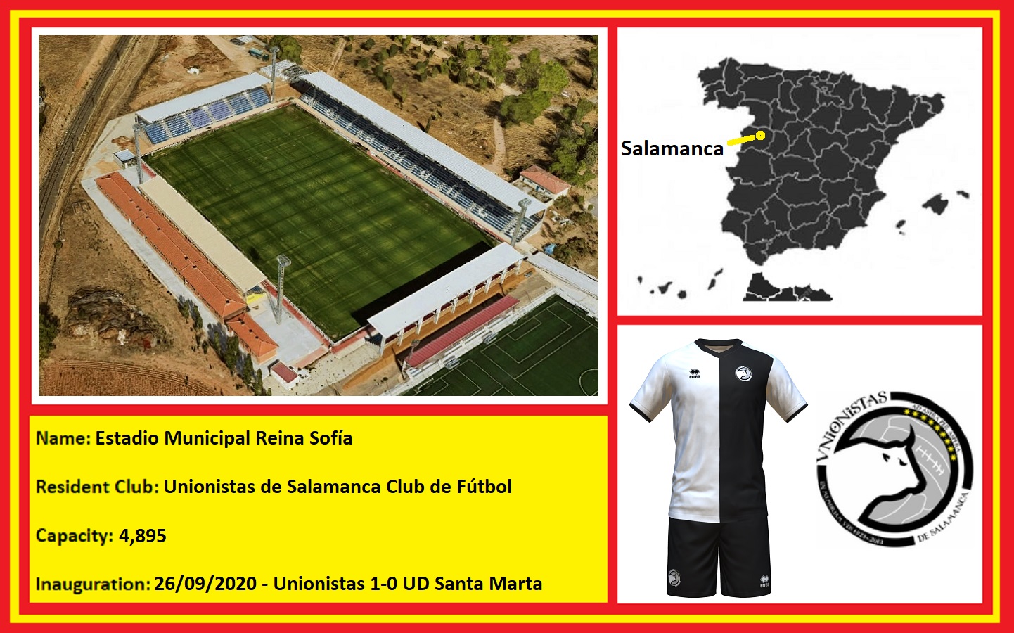 The decision was met with some resistance, with some asking why public funds were being used to rebuild a stadium when, in reality, there were two solutions in the north of the city at the Helmántico complex. However, the project gained momentum when another local club, Real Monterrey CF, agreed to share the facility with Unionistas. At a cost of €1.5m, the renovation saw the addition of three covered stands, which raised the capacity to 4,895. New floodlights, an artificial surface and new changing & media facilities were also added. The COVID-19 pandemic delayed the project, but eventually, Unionistas played their first match at the Estadio Reina Sofía on 26 September 2020. Fate dictated that the first opponents at the new stadium would be Unionistas’ first-ever opponents, UD Santa Marta. On 18 January 2024, Unionistas hosted FC Barcelona in the Copa del Rey. Whilst the Catalans won the tie 1-3, a new attendance record of 6,246 was set at the Estadio Reina Sofía, thanks to the addition of temporary seating.
