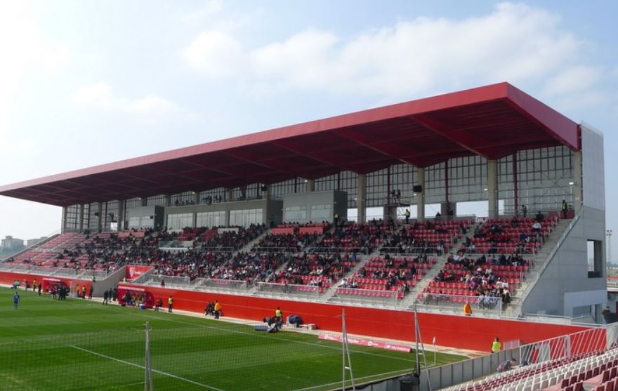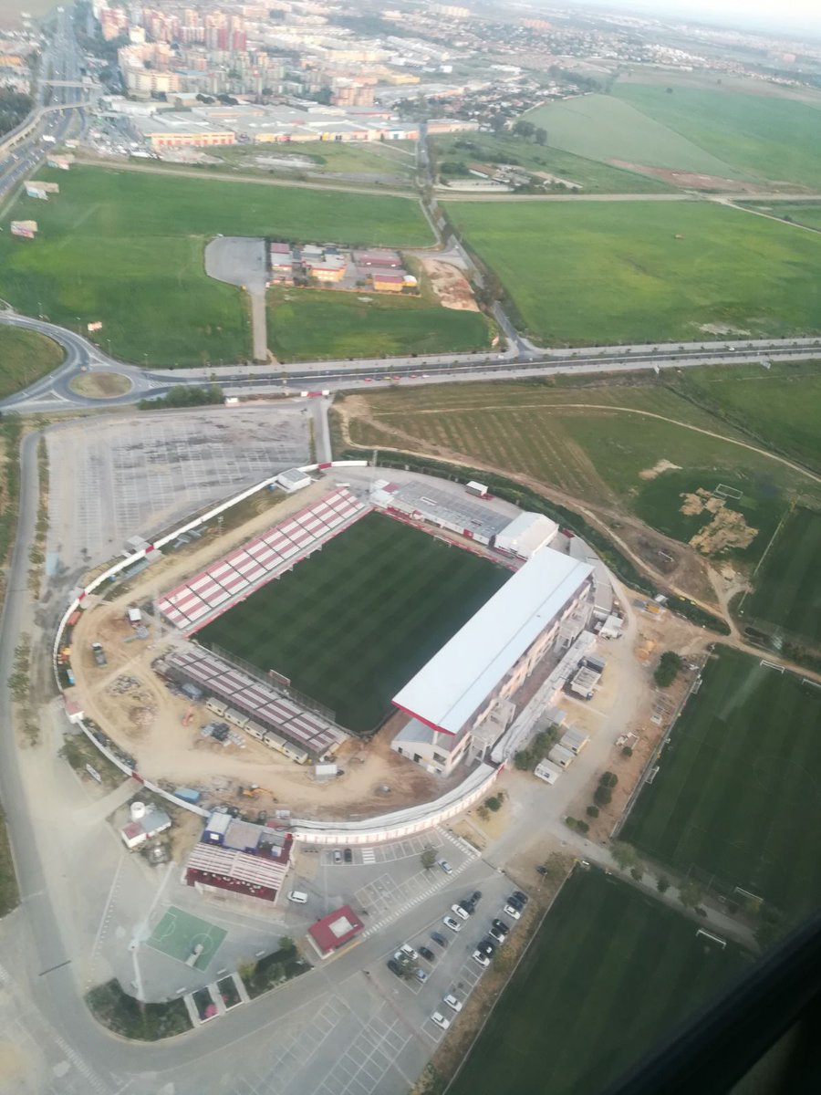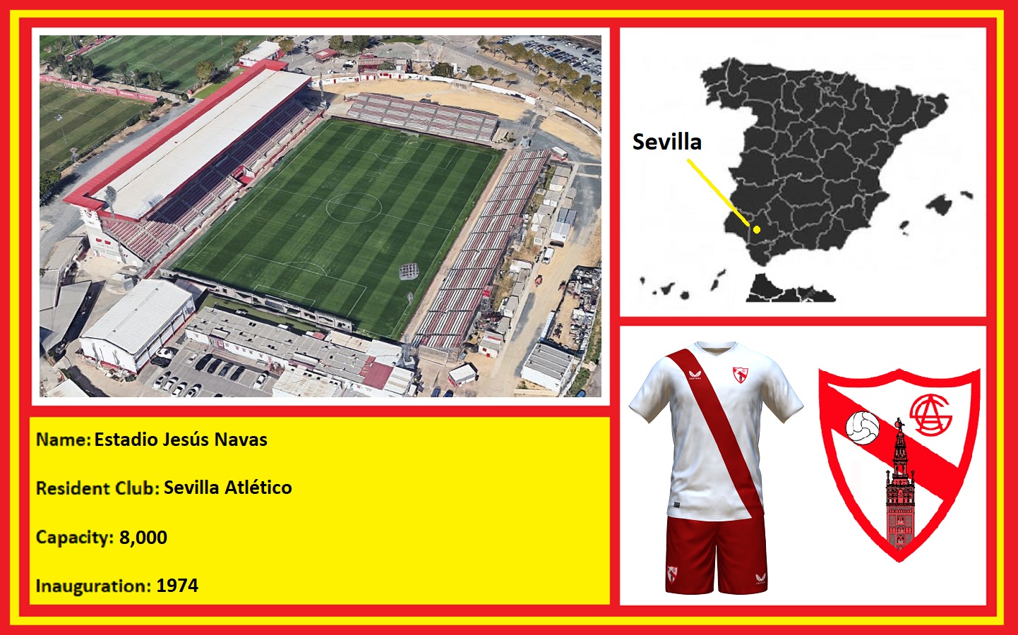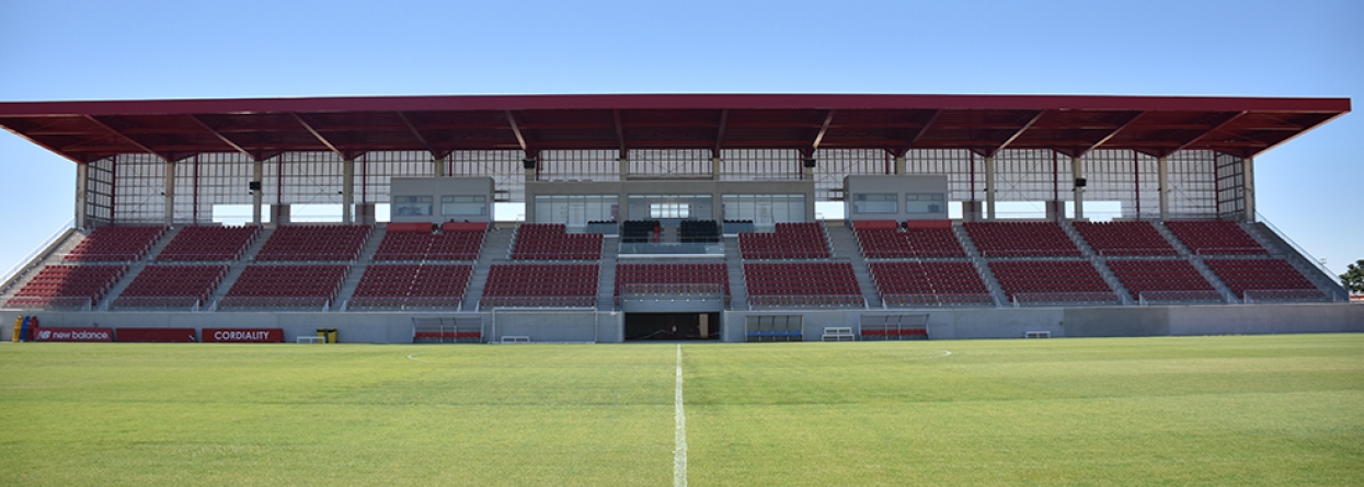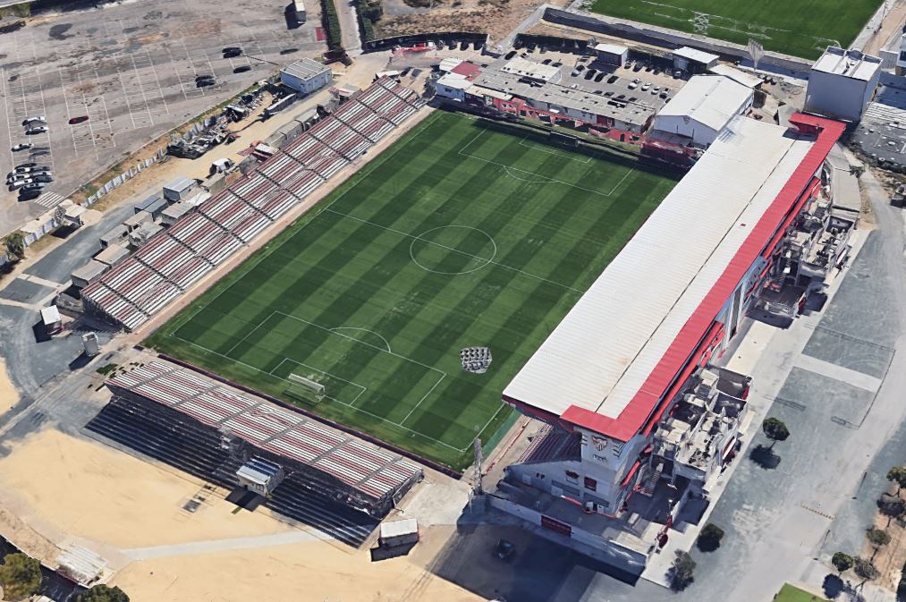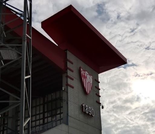 The club’s return to the second tier in 2016 coincided with the first major construction at the Ciudad Deportiva. A full-length stand with a cantilevered cover was erected on the stadium’s west side. Seating 2,600 on a single tier, it includes changing facilities under the seating deck and media facilities at the rear. The temporary stands remain on the north & east sides, raising the new capacity to 8,000. The redevelopment coincided with the new development being named, somewhat confusingly, the Viejo Nervión, after the Sevilla’s old stadium that stood next to the present site of the Ramón Sánchez Pizjuán. In October 2018, Sevilla FC announced that the stadium would be renamed the Estadio Jesús Navas in honour of the player who holds the record number of first-team appearances.