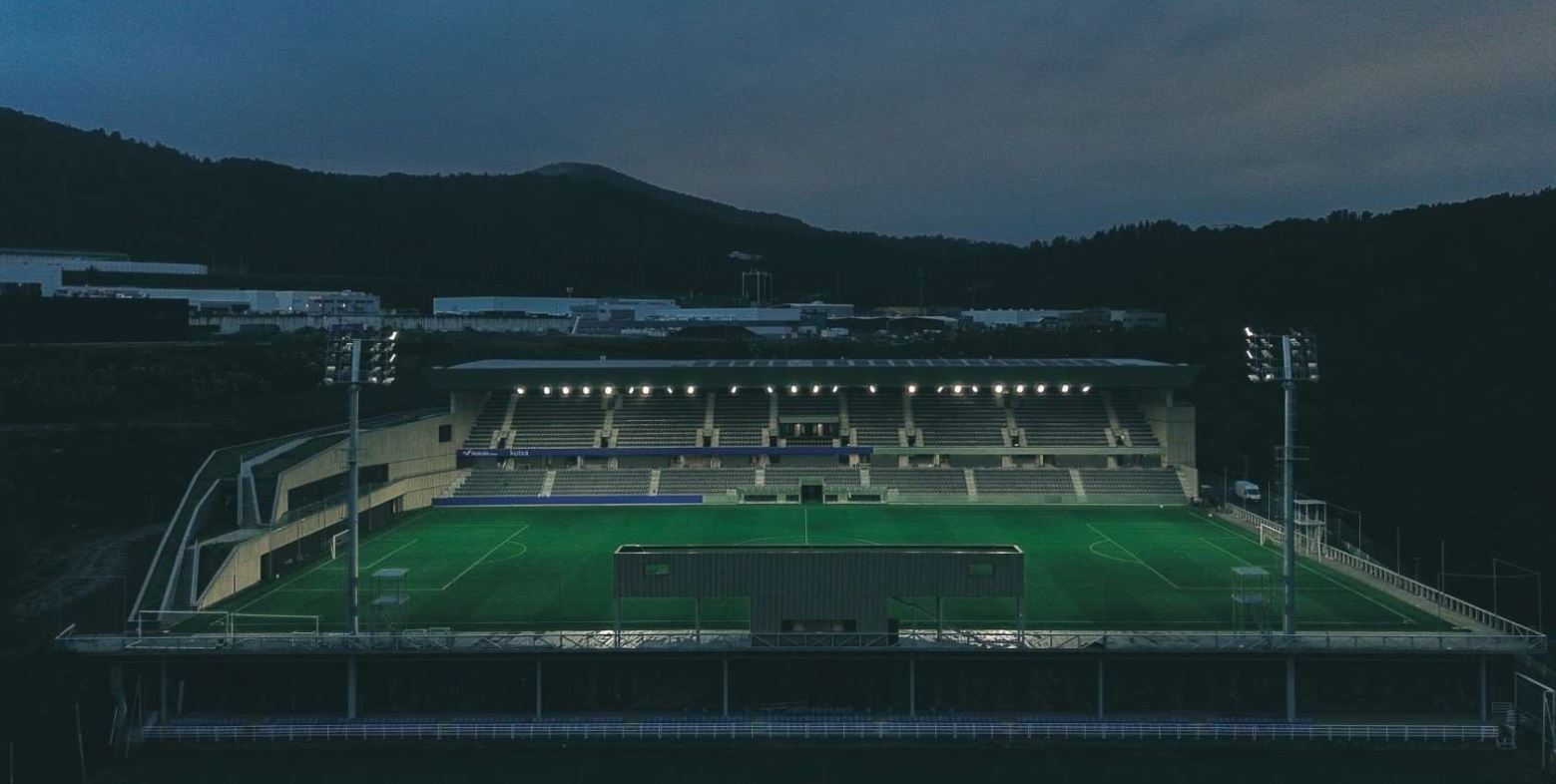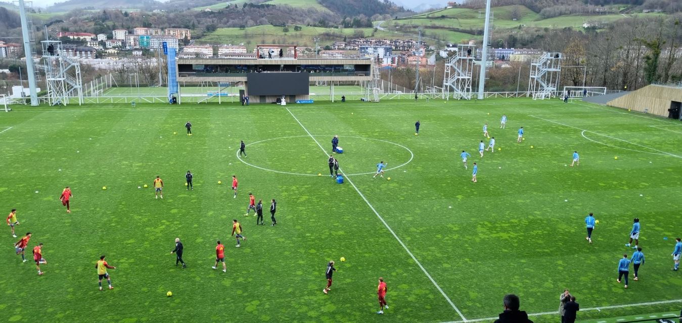 Following relegation, Real Sociedad B dropped to the new, two-division Primera Federación, finishing 5th in 2022-23, but losing 2-3 on aggregate to AD Alcorcón. Aware that the current home of the reserve side and Women’s team, the Campo de José Luis Orbegozo, offered a somewhat lopsided view a proceedings and required spectators to trudge to the furthest point from the main entrance, La Real acted. Using funds from La Liga’s deal with CVC Partners, the club decided to expand the facility closest to Zubieta’s main entrance, the glamourously named Pitch Z7. Designed by Izaskun Larzabal, the architect who was responsible for the revamping of Anoeta, the new Estadio Izan features a single, twin-decked stand with a deep cantilevered roof on its west side. With seating for 4,000 and changing, recovery and media facilities, this is the largest stand at any of Spain’s reserve team stadiums. The €15m project did overrun, and La Real’s B team, freshly promoted back to La Segunda, had to start their 2025-26 campaign at Anoeta. The Women’s team continued to use the Campo José Luis Orbegozo until Izan was completed. Real Sociedad B’s debut at Izan was delayed further, as the configuration of the stadium’s main TV gantry did not meet La Liga’s broadcast requirements. This was eventually resolved, and Real Sociedad B hosted Albacete Balompié on 10 January 2026 in their first match at the new venue.