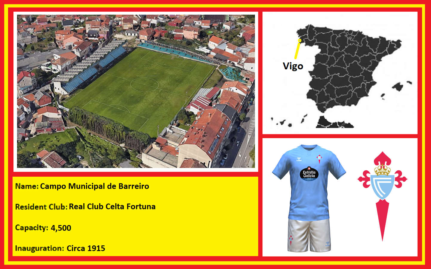 Tucked away in Vigo’s hilly, green suburb of Lavadores is the Campo Municipal de Barreiro, home to Real Club Celta Fortuna. Football has been played at this location since the second decade of the 20th century, and the ground also plays host to Gran Peña Fútbol Club, one of the city’s older clubs and one that has in the past been affiliated with Celta Vigo.