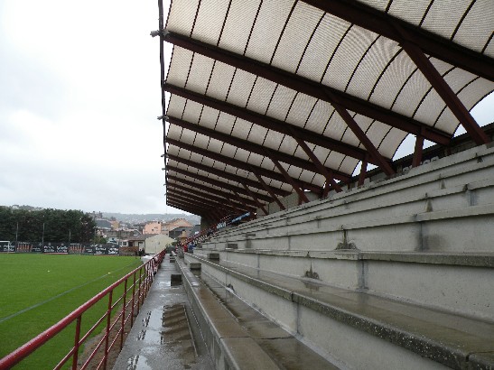 The Campo Municipal de Barriero is essentially a single stand stadium. The current structure was built in 1988 when the municipality redeveloped the site. It sits on the southern side of the ground and features a single tier of concrete steps that is 80 metres in length. Sky blue seats were added to the stand in the summer of 2016. Above the central players’ entrance is a section of 20 seats for club officials. The structure’s distinguishing feature is a barrel-vaulted, propped, cantilevered roof. This high steel & perspex cover looks impressive but offers a limited amount of protection to those seated below. Certainly open to the elements is a bust of Pepe Castro Gonzalez that stands pitchside in front of the players’ entrance. The summer of 2016 also saw a small open-seated area added. This sits opposite the main stand on the halfway line. Barriero has an official capacity of 4,500, but where attendances are expected to exceed the 1,024 seats, matches are usually switched to the Estadio Balaidos. Celta Fortuna has also played fixtures at the club’s academy, the Instalaciones Deportivas de A Madroa.