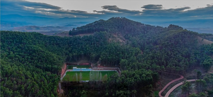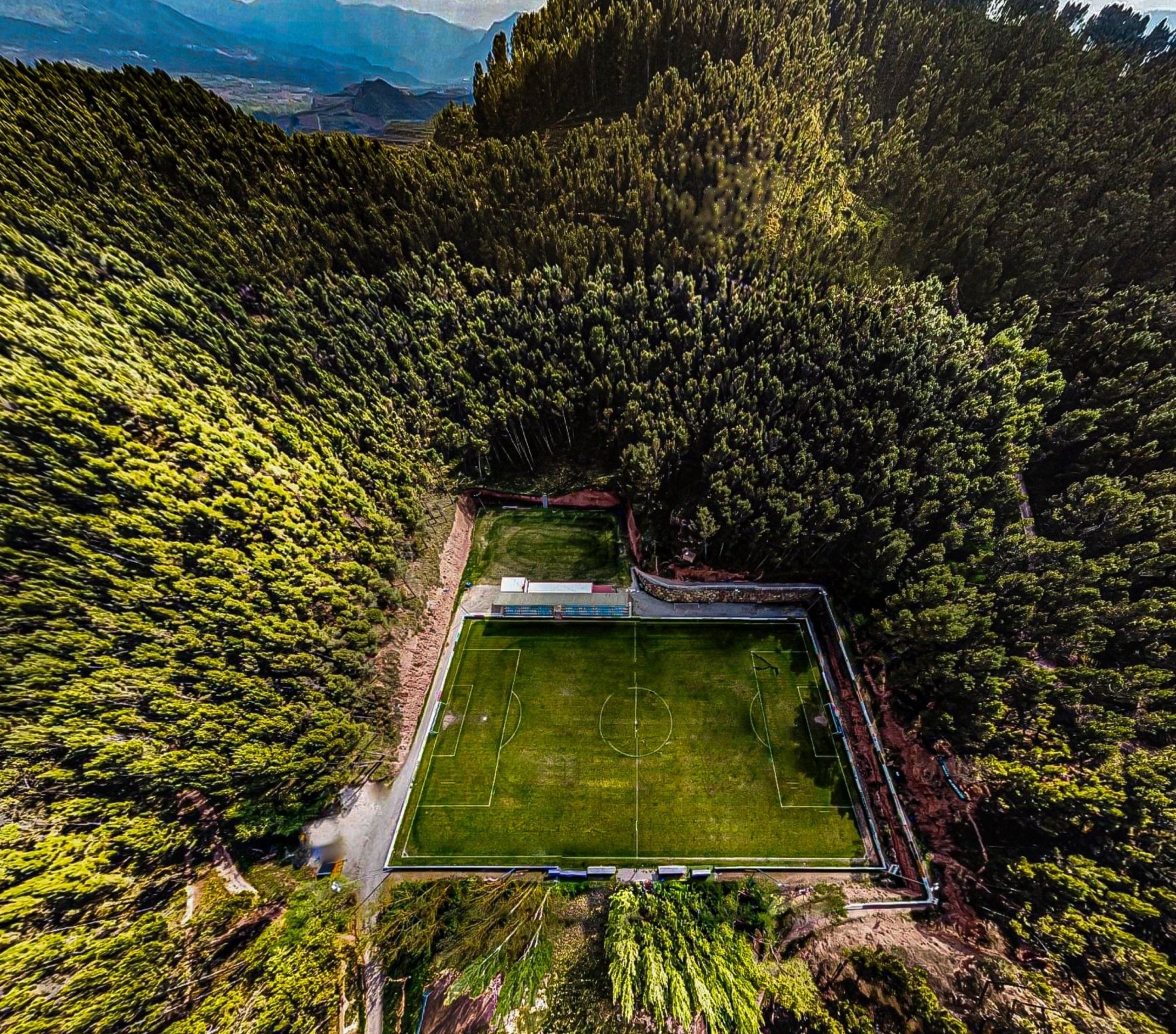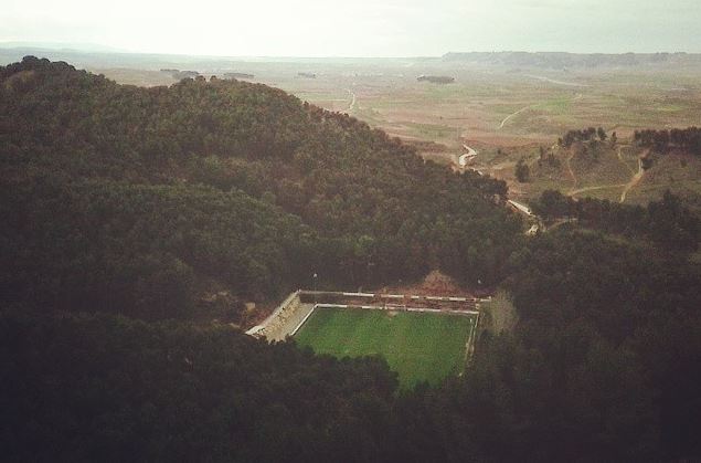 Being escorted up an unmarked track to a clearing in the woods doesn’t normally end well. You’ve seen it happen in all of those gangster/devil-worship/badger-baiting movies.. No? Maybe just me, then! Thankfully, there is nothing gruesome in this particular corner of La Rioja, but actually something quite wonderful. You see, the people of Nájera have conjured up a woodland wonderland in the shape of the Campo Municipal de la Salera. Here, they have blasted, leveled and honed the land to create a unique home for Náxara Club Deportivo. A home where bare rock, conifers and some more standard stadium accouterments have been combined to make a perfect natural amphitheatre.