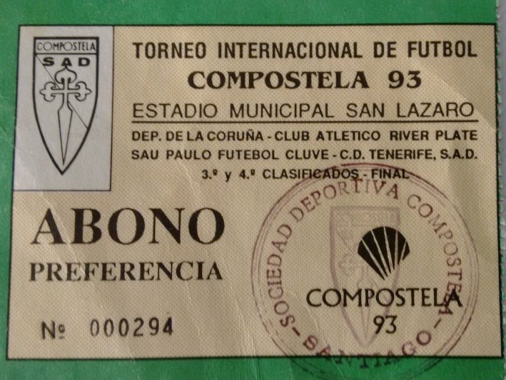 In 1986, the poor season on the pitch was compounded by an off-field controversy surrounding the actions of then-president Francisco Steppe. He resigned amid allegations of receiving payments to throw a game against Pontevedra CF, which would have improved their rivals’ chances of maintaining their status in the Segunda B. The late 1980s witnessed a significant restructuring of the club, both at board and management levels, and in 1990, Compostela returned to Segunda B. The following season was to prove the club’s most successful to date. A third-place finish ensured entry to the playoffs, and on 23 June 1991, a capacity crowd of 8,000 gathered at the Estadio Municipal Santa Isabel. They witnessed goals from Juanito and Ochoa (two), which clinched a 3–1 victory in the final playoff match against CD Badajoz and, with it, promotion to La Segunda.