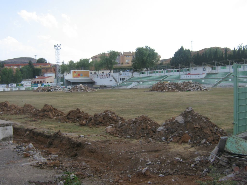 The stadium had undergone some changes since opening in 1957. Originally, it featured an open deck of terracing on the west side that sat on either side of the halfway line for 50 metres. A roof was added in the 1960s, and this was extended northwards with an extension to the seating when the club reached Segunda B. A grass pitch, replacing the old sand & lime surface, was also added at this point. In 2007, as part of the club’s golden jubilee celebrations, the stadium received a makeover when a new roof was added to the west side, which now extended the full length of the pitch. New seating was added to the existing deck, and the raised platform above the changing rooms, which stands in the south-west corner, now features a bar and small hospitality under the new roof. The three open sides were also re-terraced, taking the overall capacity to 3,000, and a new pitch was laid. The stadium was renamed the Estadio Juan Antonio Endeiza in honour of the club president who oversaw proceedings in the 1960s.