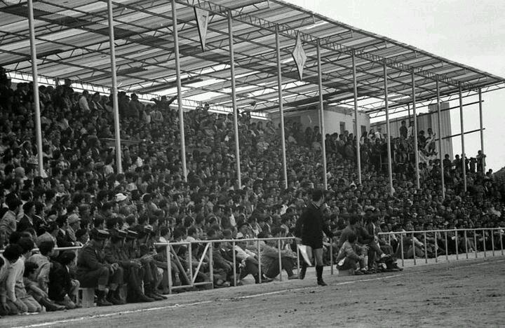 Andorra sits high in the Sierro de Arcos and is prime mining territory. So it comes as no surprise that Calvo Sotelo, the nationalised mining & petrochemical company, set up shop in the town in the 1950s. With its arrival came jobs, migrant workers and new communal facilities. The town’s first club, the unrelated Andorra Club de Fútbol, used the facilities the mining company built in 1955 when competing in the regional leagues. Andorra Club de Fútbol played Real Zaragoza in the inaugural match at the stadium on 8 September 1955. Calvo Sotelo was proving to be a growing influence in the town, and in 1957, they formed Club Deportivo Andorra as an immediate replacement of the recently defunct Andorra CF. Thanks to company sponsorship, the club made short work of the regional league and debuted in the Tercera in 1958. The club adopted the title Club Deportivo Calvo Sotelo in 1959, and the ground was renamed the Campo de Fútbol Calvo Sotelo. Over the next twenty or so seasons, CD Calvo Sotelo remained in the Tercera, gaining a couple of titles along the way, but never quite made the step up to the next level.