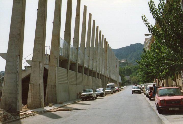 The Campo de La Murta was officially inaugurated in 1922, but the area had been used for recreational purposes for many years before. Until 1960, the ground was very rudimentary, consisting of a simple, uncovered tribuna on the west side of the ground and a single step around the pitch. In the 1960/61 season, lead player Richart was transferred to Sporting de Gijón, and it is said that this money was used to build the popular terrace at the north end of the ground. Simple improvements to the terracing occurred during the 1980s, but the next major improvement was the building of a new tribuna on the west side in 1990. This remained uncovered throughout the 1990s until a roof was added in 2000. If you look closely at the back of the stand, there are more upright supports than actual cantilever struts, suggesting that the stand was originally planned to be 20 metres longer than the finished article. With its modern lines, sleek white cantilevered roof and 1750 sky blue and white seats, the stand is now the focal point of the stadium. The last significant upgrade came in 2005 when the club replaced the natural grass with artificial turf.