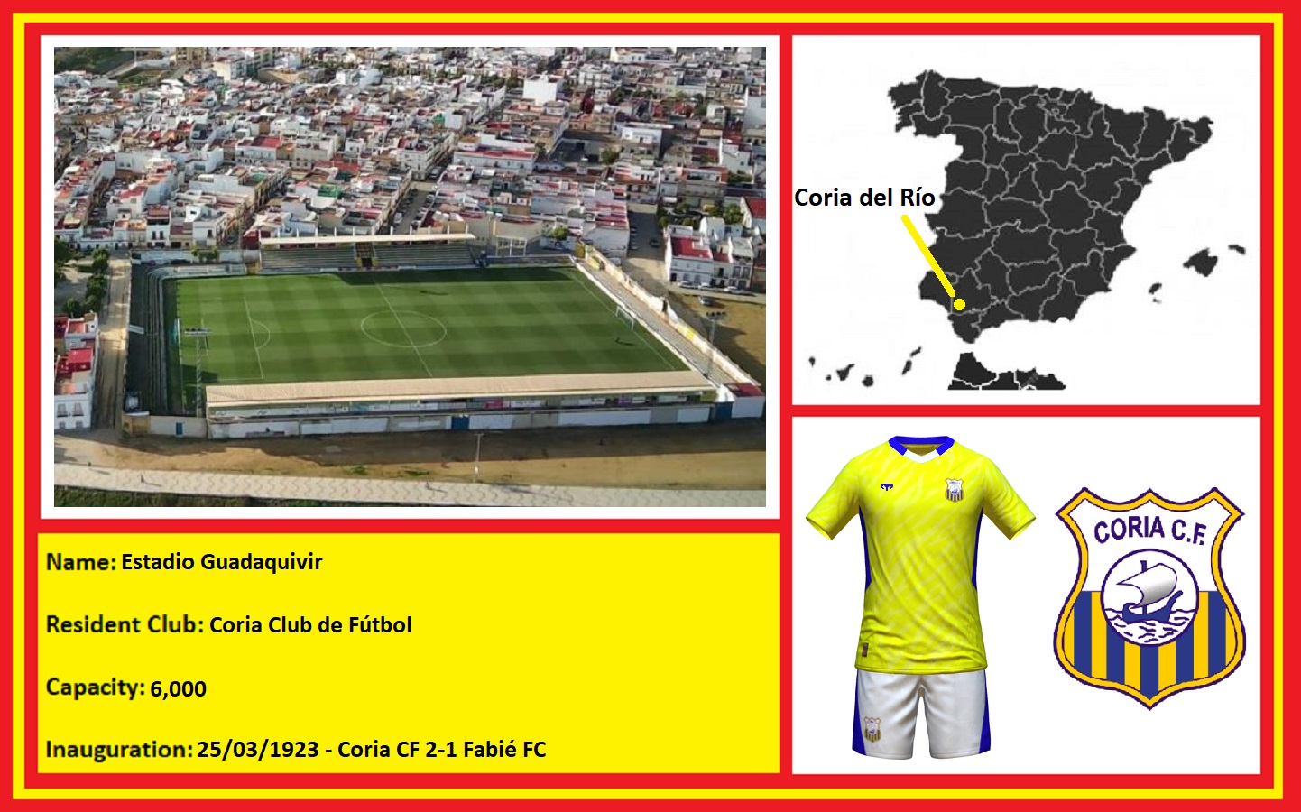 There are several great stadiums within a stone’s throw of the Rio Guadalquivir, but none are as close or, for that matter, as old as the one found in the small Andalucian town of Coria del Río. Standing less than 15 metres from the bank of Spain’s second-longest river, the Estadio Guadalquivir has been home to Coria Club de Fútbol since its formation in March 1923, making it the sixth-oldest stadium in Spain.