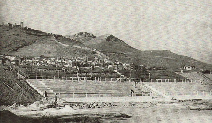 Jaén, the largest city in the province of Andalucia that shares its name, experienced a relatively early introduction to football compared to neighbouring Murcia and Albacete. British investment in the lead mining industry during the 1890s led to the game being played in Linares, soon spreading to the provincial capital of Jaén. In the early twentieth century, several teams were formed in the city, though organised, competitive football remained limited. The city’s first properly enclosed ground, the Campo de Peñamefécit, opened on 28 September 1924. On this occasion, the resident club Jaén Club de Fútbol defeated A.D. Ferroviaria de Málaga 5-2. Jaén CF disbanded in 1928, leaving the Campo de Peñamefécit unused until the formation of Sociedad Olímpica Jiennense on 12 June 1929.