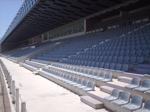 To be frank, the stadium cannot take too much blame for the club’s demise. Whilst it does not have the convenience and intimacy of the old La Victoria, Real Jaén’s die was cast when it became a Sociedad Anónima Deportiva or limited company. With little immediate income to maintain its position in La Segunda, the club was unable to loosen its constricting financial chains. In turn, the stadium has become a bit of a whipping boy for all that has gone wrong. Yes, the stadium is a couple of miles out of town, and you can no longer breathe down the back of the neck of the opposition goalkeeper, but a bad stadium? No, not at all. Rubiño García Márquez’s design is certainly minimalist but perfectly functional. Access to the stadium is raised, and spectators walk up to the back of each seated area, across a raised deck area and then down into their seats. The main west stand has mid-level vomitories at its rear, which bring spectators to the front of the stand. This stand’s roof is surprisingly low, with its cantilevered beams clad in brushed aluminium, which has hundreds of circles cut into the façade. The changing facilities are below the main stand, as is access to a training/warm-up area that lies under the pitch.