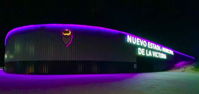 The design was heralded as the way forward for small-town clubs and won awards and praise in architectural circles. Interestingly, whilst the design has had its imitators, Rubiño García Márquez has not built another stadium, although they did submit unsuccessful bids for the new stadium builds in Zamora & Almería. In August 2021, the council of Jaén took steps to regain control of the Estadio Municipal de La Victoria from its tenants, Real Jaén. The stadium had been effectively abandoned in a state of disrepair following the club’s demotion to the Tercera Federación at the end of the 2020-21 season. Real Jaén failed to fulfil the first fixture of the 2021-22 season against CF Motril, but later in September, the Fomento y Promoción del Real Jaén became the majority shareholder and brought about a degree of stability. In 2023, the metal cladding on the roof of main roof was replaced and the exterior was revamped with new signage and neon lighting in a fetching shade of purple, to match that on the club badge. The parking lot was extended and the troublesome playing surface was relaid.