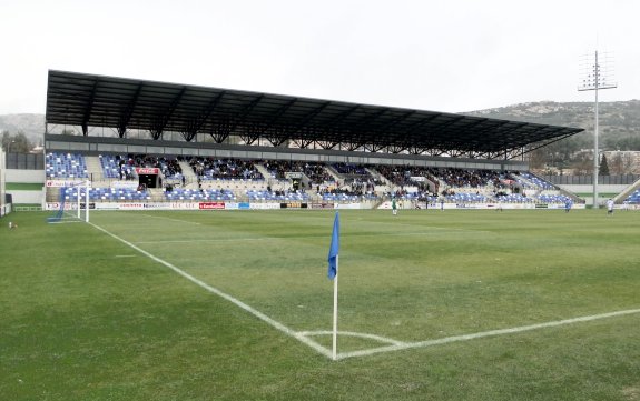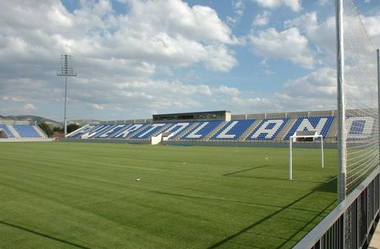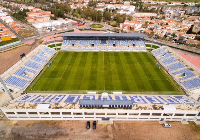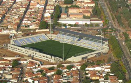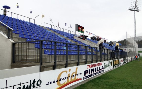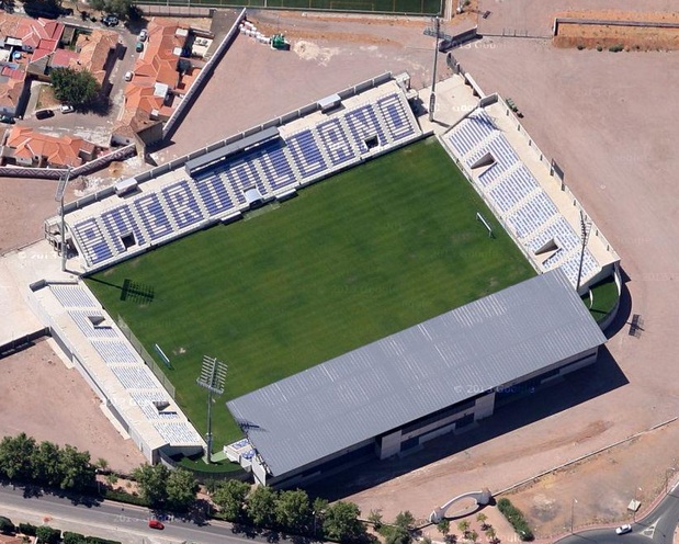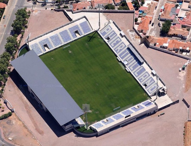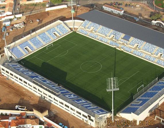 The new stadium was built on the site of the club’s original Estadio de Cerru, although the town’s urban sprawl now enveloped the site. The Estadio de Cerru had continued to be used for football up until 2005, when the site was cleared in preparation for the new enclosure. Constructed by the municipality for €7 million, the new arena has an all-seated capacity of 7,240, arranged on three open banks of blue and white seating and a large covered main Tribuna. The Tribuna stands on the northern side of the ground and comprises two tiers, with 960 seats spread over four rows on the lower tier, and 1,916 seats over ten rows in the upper tier. At the rear of the upper tier is a row of 17 private boxes. The Tribuna also contains modern media facilities, four changing rooms and an indoor warm-up area for the players. The development is completed with a full-size artificial training pitch behind the southern bank of seating. Care was taken to preserve the original arched gateway to the stadium, which still stands behind the Tribuna. CD Puertollano played its first match at the Estadio Ciudad de Puertollano on 21 November 2010, when they drew 2-2 with Sevilla Atlético.