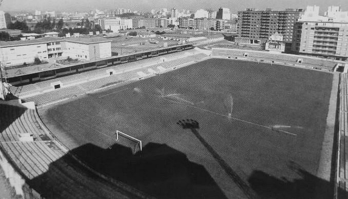 La Puentecilla was built on open land to the southeast of the city. By the time of its closure, León’s urban sprawl had surrounded it. The main stand featured a single tier of seating with a low propped cantilevered roof. The remaining three sides were made up of decently sized terraces, and behind the north terrace stood a tower which also incorporated a fantastically ornate scoreboard. On 31 October 1998, Barakaldo was defeated 4-1 in the last match at the ground. La Puentecilla and its surrounding tenements were soon demolished, but all memories of the old stadium have not been erased. The Calle La Puentecilla, a nondescript suburban street, follows the line of the north terrace and its grand old tower.
