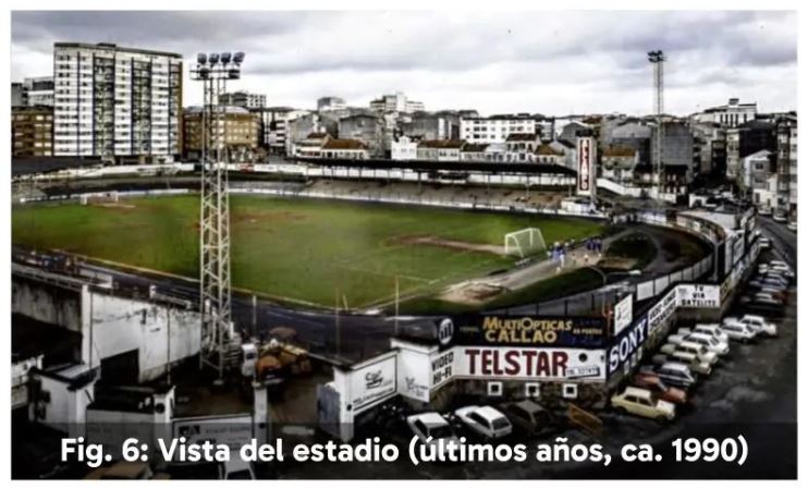 The next two decades saw Racing establish itself in the regionalised second division, and although they only reached the playoffs once (a disappointing last place in the 1951-52 playoff group), the confidence within the club was such that in 1950, it embarked on a major redevelopment of Campo Inferniño. Up to that point, the enclosure had followed traditional lines of four narrow terraces close to the pitch, and a narrow covered stand on the west side. The new stadium was laid out in an oval, with a new main stand on the west side. The roof was cantilevered but straddled the halfway line for only 50 metres. A curved terrace ran around the northern end, whilst the southern end featured hard standing. The east side had a substantial open terrace, whilst in the south-east corner of the ground, a tower was built. Not as big or as grandiose as the one at the Riazor, but it was a tower all the same.