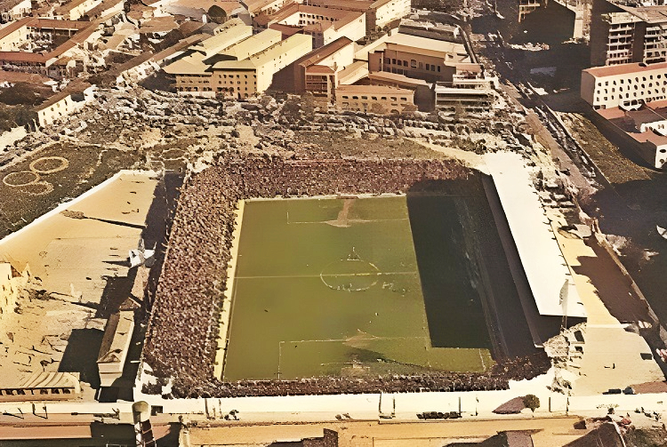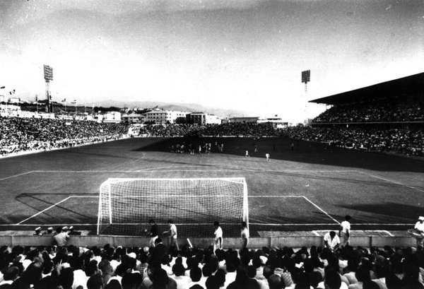 The new stadium was a basic square and uncovered on all four sides. A small seated area for club officials was situated on the southern side, while changing rooms and club offices were located in the area between the terrace and perimeter wall. Perhaps the stand-out feature was the colourful entrance located on the south side. Three entrance gates were each topped with a red and white arch, the central one featuring the stadium’s name and club crest. The Civil War ensured that any national leagues would be put on hold until 1939, but when footballing hostilities resumed, Club Recreativo Granada changed its name to Granada Club de Fútbol. The newly monikered club finished runners-up in the southern section of the second division, missing out on the promotion playoffs by a single point to Cádiz. They did not have long to wait, however, as promotion was gained the following year via the playoffs, earning promotion with a victory at Castellón, with a match to spare. Over the next 25 years, the club had three spells in the Primera, none of which lasted longer than four seasons. However, they did reach their one and only final of the Copa del Rey in 1959, losing 4-1 to Barcelona at the Santiago Bernabéu.