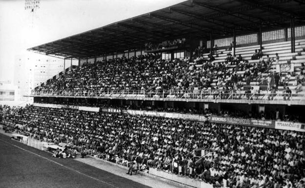 Granada CF’s most successful period in the Primera commenced with promotion at the end of the 1967-68 season. Los Cármenes underwent its only significant facelift with the building of a new two-tiered stand on the southern side of the ground, which was inaugurated on 24 November 1968 with a 2-0 victory over CD Málaga. In keeping with the rest of the ground, the stand was white and very basic, with the roof supported by thin pillars set three rows from the back. A narrow media booth was also located at the rear of the upper tier. Somewhat startling was the fact that despite running the length of the pitch, the upper tier only had two narrow vomitories (exits). Sandwiched between the upper tier and the lower terrace was a thin row of covered palcos or rudimentary private boxes. The addition of the covered stand took the overall capacity of Los Cármenes to 22,000.