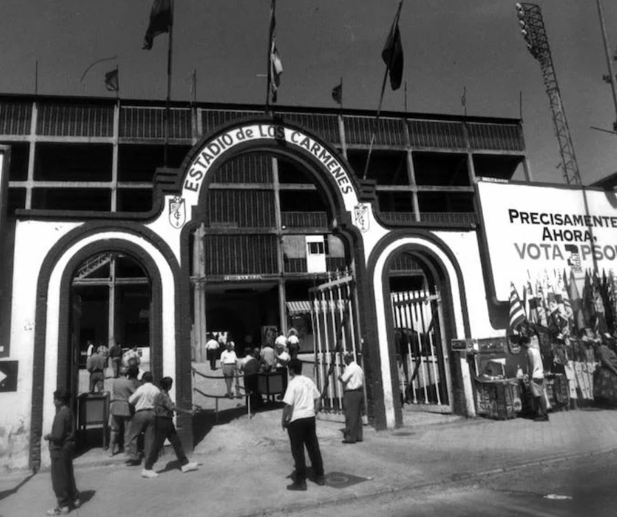 In reality, the Campo de las Eras de Cristo was nothing more than a pitch on open land. If Club Recreativo Granada wanted to progress, it needed income from the ever-growing number of spectators attending its matches. The club set aside a sum of 30,000 pesetas and made a short move to a new home. Over the course of 17 days, their basic new home was enclosed using old wooden tables, doors & off-cuts. On 20 December 1931, the Campo de Las Tablas was inaugurated with a match against UD Andújar, which Club Recreativo won by a goal to nil. The club was to stay at Las Tablas for three years, and in their final season, they gained promotion to the second division. Work had already begun on a new ground in 1933 on a plot of land between the aforementioned prison and the Plaza de Toros. “Los Cármenes” proved to be torturous, and the initial sum of 110,000 pesetas was soon exhausted. Further fund-raising and loans from directors saw the cost soar to 200,000 pesetas, before the ground was officially inaugurated on 23 December 1934, with a league match against Club Deportivo Malactiano (CD Málaga). The home side prevailed by two goals to one.