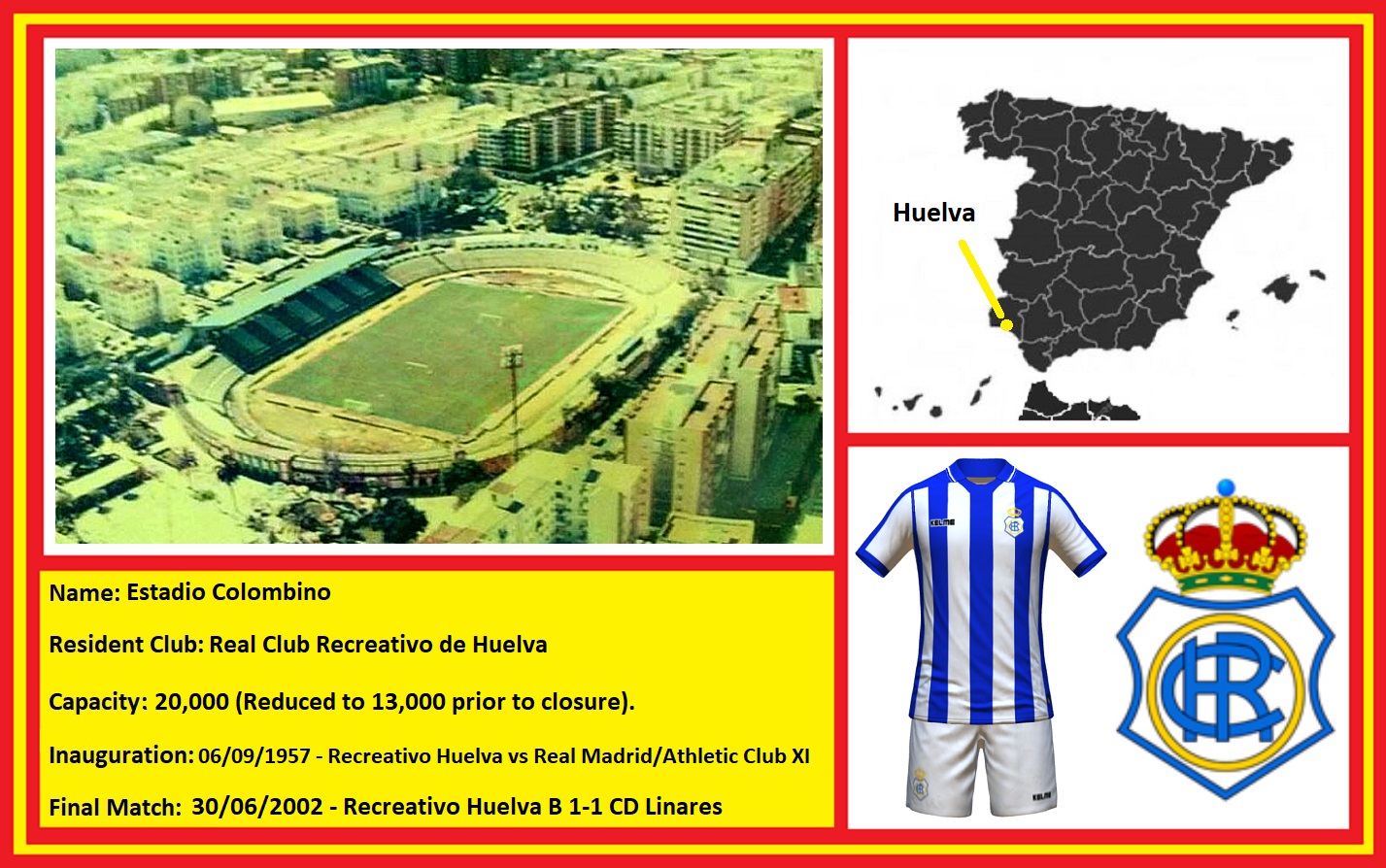 The old stadium saw its last first-team action on 9 December 2001 when Recreativo was held to a 0-0 draw by UD Levante. Recre’s reserve drew 1-1 with Club Deportivo Linares in the final game at the old stadium on 30 June 2002. The municipality and the Andalucian government then held protracted discussions over the future use of the land, all of which meant that the old stadium fell into disrepair. The demolition teams finally got to grips with the old ground in 2007, levelling everything except the southern terrace and the old gateway that stood next to the gardens. For the next decade, the site was an ugly sprawl of a car park & open wasteland, but in 2020, the site was finally developed to include a health centre and public gardens. The site of the Estadio del Velódromo can be found on Alameda Sundheim, named after one of the club’s founders. Here you will find a sculpture commemorating the stadium on the aptly named Plaza del Velódromo. Hopefully, in the near future, the municipality will celebrate the history of the old Estadio Colombino that stood in Isla Chica with an appropriate monument.