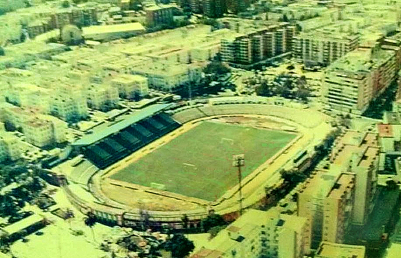 Work had begun on the new stadium in February 1955 when the local municipality purchased a plot of land for the club in the district of Isla Chica for 69,000 pesetas. Architects Miguel Rodríguez Cordero and Ricardo Anadón Frutos were commissioned to design a modern stadium that featured a full-length seated grandstand with a cantilevered roof on the western side and an athletics track. The rest of the stadium was made up of a single tier of terracing, giving it an overall capacity of 20,000. The change facilities were under the eastern terrace and accessed via a set of pitchside steps that led under the track. At the southern end of the ground was an elaborate gateway and a series of raised arches that stood above the terracing. From here, you could look down upon a formal garden that was all part of the 15 million peseta budget. The ground was inaugurated on 6 September 1957 when Recreativo played a combined side featuring players from Real Madrid and Athletic Club. The first season in their new home was not a success, and Recreativo was relegated. They bounced back and played the 1959-60 season in La Segunda, only to be relegated again. Some stability was achieved following promotion back to the second tier in 1961-62, when Recreativo embarked on a seven-year stay in the second division. In reality, Recreativo never came close to promotion to the top flight, and finally dropped back to the Tercera in May 1968, from which there would be no immediate return.