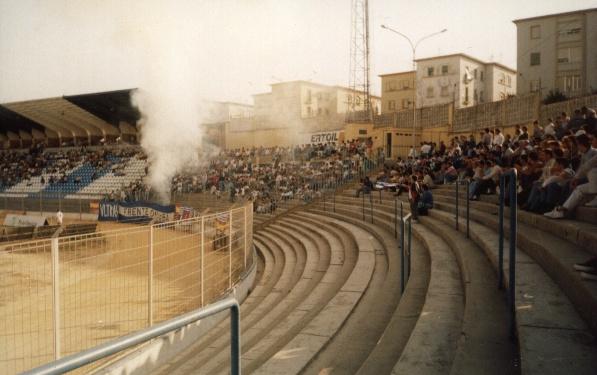 Onuba FC dominated the Western Federation in the years leading up to the Civil War, then, following the end of the fighting, was readmitted into the Southern Federation. It was also admitted to the reformed La Segunda, which, thanks to the Nationalist government’s interference, was structured to include as wide a regional representation as possible. Onuba finished sixth in that 1939-40 season and was relegated to the Tercera. In 1945, the club successfully requested the reinstatement of its name and in 1947, won its third Tercera title but failed once again in the playoffs. It was the same story in 1950-51 when another title was followed by a further failure in the playoffs. With the growth of the game in the fifties and Recreativo attracting larger crowds, work started on a new ground half a mile to the northeast of the Estadio del Velódromo. Recreativo saw out their time at the Velódromo with another Tercera title and finally found success in the playoffs. UD Melilla and Elche CF were defeated, with the 2-0 victory over Elche CF on 9 June 1957 being Recreativo’s last competitive match at the old stadium before moving to the new Estadio Colombino and La Segunda for the start of the 1957-58 season.