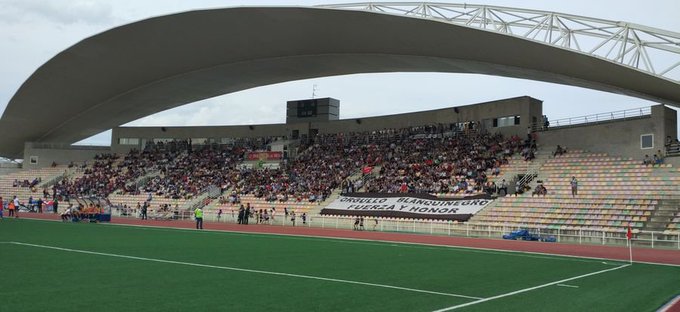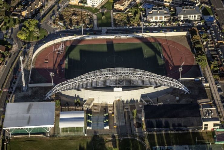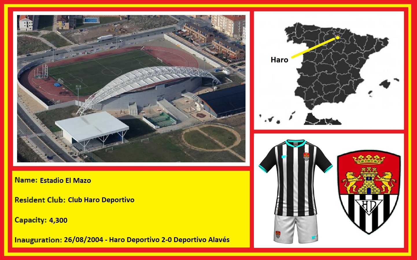On 26 August 2004, Haro Deportivo opened the new Estadio El Mazo with a 2-0 friendly win over Deportivo Alavés. The stadium was just 200 metres south of the old Campo El Mazo and was designed by architect Enrique Aranzubia. The municipally owned stadium has an athletics track and three empty sides, but all is forgiven due to the striking stand at El Mazo. Aranzubia’s design incorporates a 110-metre-long arch from which is suspended a huge curved roof, and it is like no other in Spain. All 4,300 seats are located on the east side of the stadium, with the roof providing cover for approximately two-thirds of the seating tier. On 29 August 2023, the Estadio El Mazo was renamed in honour of the Spanish Men’s national coach, Luis de la Fuente. Born in the city, de la Fuente played for Haro Deportivo’s youth teams before joining Athletic Club in 1978.