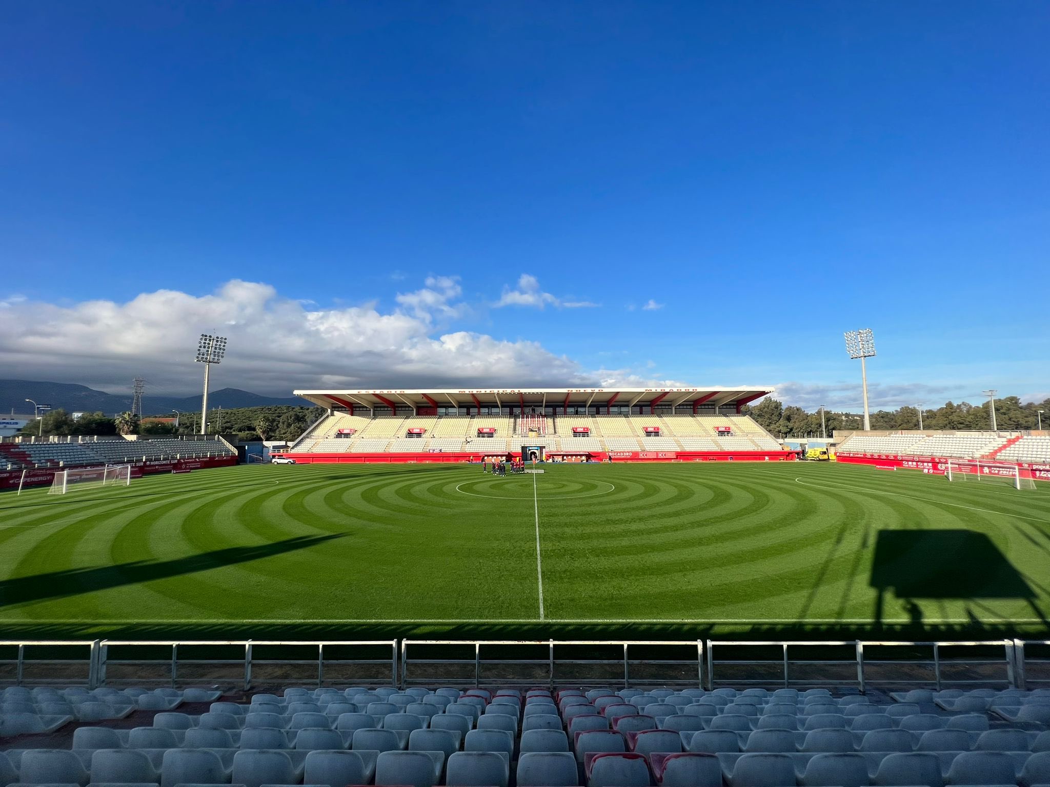 So Algeciras swapped the old and ramshackle El Mirador for the new and pristine Nuevo Mirador. They also swapped the convenient and intimate for the distant and functional. The new stadium is a carbon copy of the Estadio Municipal Butarque that opened a year earlier in the Madrid suburb of Leganés and offers 7,200 seats on a single, raised tier. A sleek cantilevered roof hangs over the west side seating deck, with ten media booths at the rear. Changing rooms, a press room, a gynasium and offices are housed under the structure. The stadium witnessed early success as Algeciras won the Tercera title and promotion in their first full season at the stadium. Further success followed when promotion to La Segunda was achieved following a second-place finish and victory over Athletic B, Burgos CF & Zamora in the playoffs. However, history repeated itself in 2003-04 when Algeciras finished bottom of La Segunda, 16 points from safety.