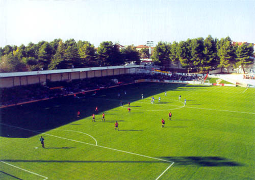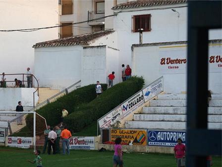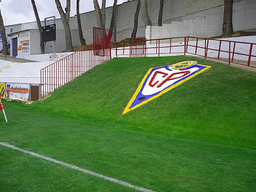 The northern end of the ground is an amazing mix of steps and greenery that looks more like the terraces of a steep garden than those of a football ground. Behind the northern goal is a beautifully manicured grass bank, at the centre of which is the club crest. The eastern terrace is the most uniform section of the ground, with six wide steps of open terracing. These steps run around the south-east corner and link up with the southern terrace. The club’s offices and changing rooms sit atop this terrace, and pitch access is gained through two rows of privet hedges. Finally, as if to emphasise the fact that you are pretty much in the middle of La Mancha, just opposite the southern entrance is a statue of Don Quixote and Sancho Panza. The stadium hosted international football when the Spanish U-21 side visited on 9 October 1999, beating Israel 2-1 in a UEFA qualifier. All in all, the 5,500-capacity Campo Nuestra Señora de la Caridad is the complete antithesis of everything that you will find in a modern stadium, and I love it!