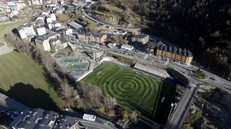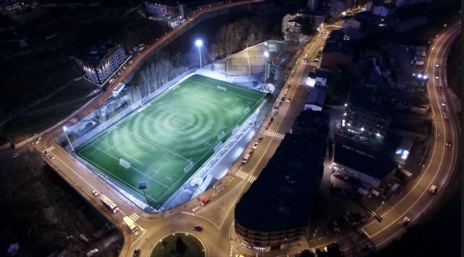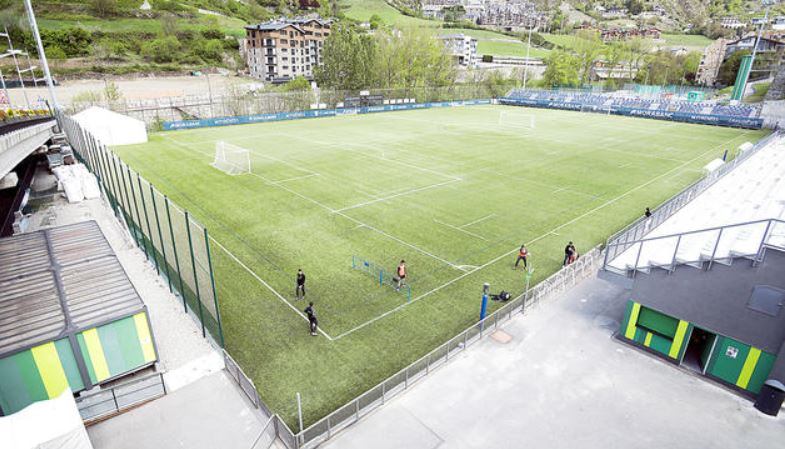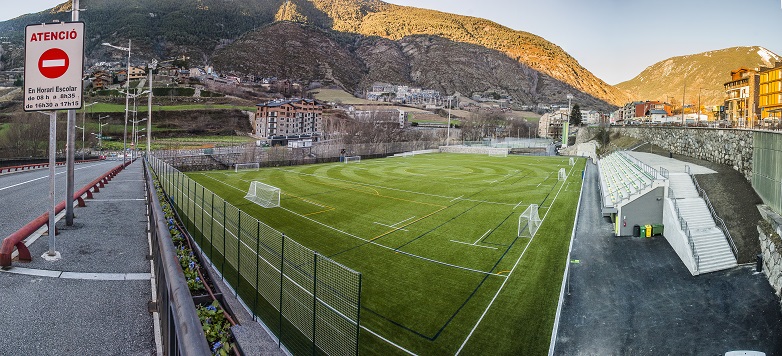 Despite its decline in status, FC Andorra continued to play at the Camp d’Esports d’Aixovall up until its closure in 2015. They then played for the first two months of the 2015-16 season at the recently developed Estadi Nacional, which had been built on the site of the old Camp d’Esports del M.I. Consell General and opened in September 2014. After two months at the Estadi Nacional. FC Andorra moved a kilometre south to the Camp d’Esports de la Borda Mateu, which is the Andorran FA’s training centre. Its covered spectator facilities consisted of 120 seats, a sad reflection of FC Andorra’s status at the time. Following investment from the Kosmos Holding Group, FC Andorra upped sticks in January 2019 to play at the Camp de Fútbol de Prada de Moles. Situated in the small village of Encamp, just to the east of Andorra la Vella, it has a seated capacity of 530.