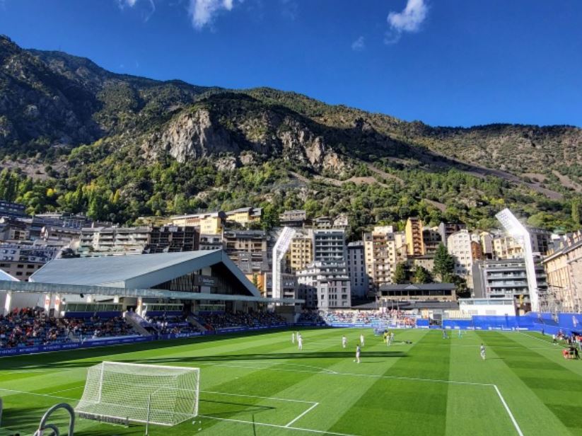 It was to prove to be a short stay at the Camp de Fútbol de Prada de Moles. As FC Andorra’s meteoric rise generated greater interest, the ground’s small capacity and numerous free vantage points meant that a move back to the Estadi Nacional was the only sensible option. However, that was not before promotion was gained in the 2020-21 season, the last under the old Segunda B format. Truncated by the COVID-19 pandemic, FC Andorra finished 3rd in their sub-league and qualified for the play-offs to La Segunda. Although they lost in a playoff with Real Sociedad B, their efforts in the (ir)regular season earned a place in the RFEF’s new Primera División (Third Tier).