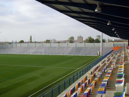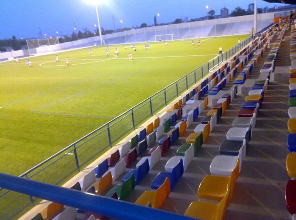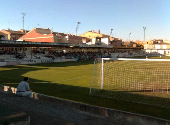 Los Olmos is a sports complex and park area located to the north of the town, featuring an athletics track, tennis courts, basketball courts, and a BMX track. The football stadium features a full-length, raised cantilevered stand with a capacity of 1,250, of which 1,032 are seated. Beneath the seating deck lie the changing facilities, a gym and a media room. Raised banks behind both goals allow scope for the capacity to be raised to 5,000. The stadium cost the local council €2.4 million, an impressive investment for a town with a population of just 10,000. The stadium has yet to rekindle any of the spirit that El Segalar had in abundance when CD Binéfar ruffled feathers back in the old days of Segunda B.