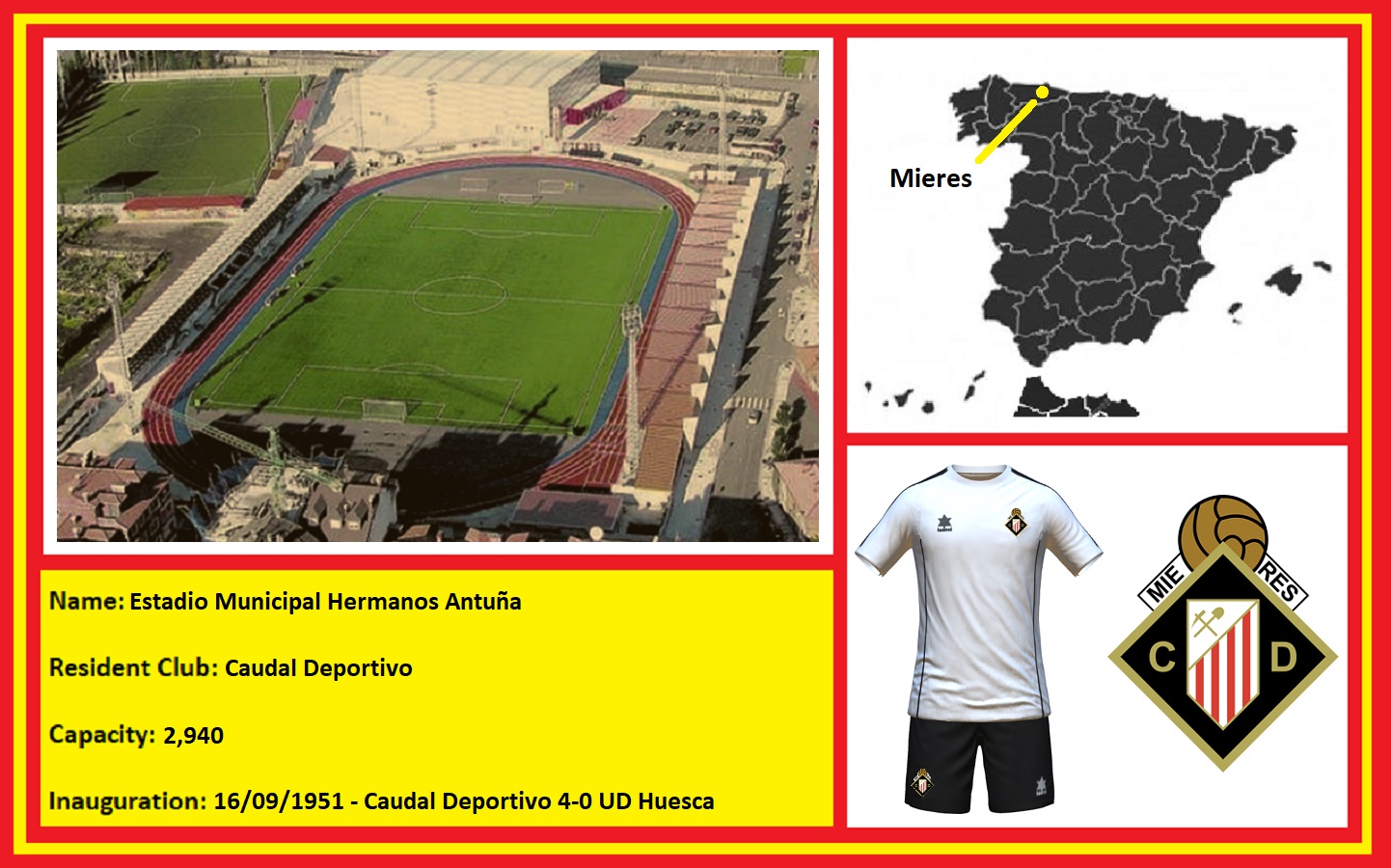 The club was formed in 1918 as Racing Club de Mieres and played its first matches at El Llosu in the Batán neighbourhood. Within a year, the club had fallen under the wing of Fábrica de Mieres, the local mining and steel producer, who built the Campo de El Batán, which opened on 15 July 1919. The company began recruiting some of the region’s best players. Within a few years, it was rubbing shoulders with the regional heavyweights from Gijón & Oviedo in the Primera Categoría Asturiana. Racing was affected by the miners’ uprising of 1934, which resulted in many deaths and led to the club adding a spade and pickaxe to its crest. Following the Civil War and the Federation’s banning of all Anglicised words, Racing changed their name to Caudal Deportivo, a reference to the river that runs through the town. Under the presidency of Ramon Antuña, the club moved to a new ground in the south of Mieres. The Campo de Las Moreras opened on 27 September 1941 with a 2-0 victory over Club Hispania de Gijón, and it was here that Caudal started to make its ascent through the leagues.