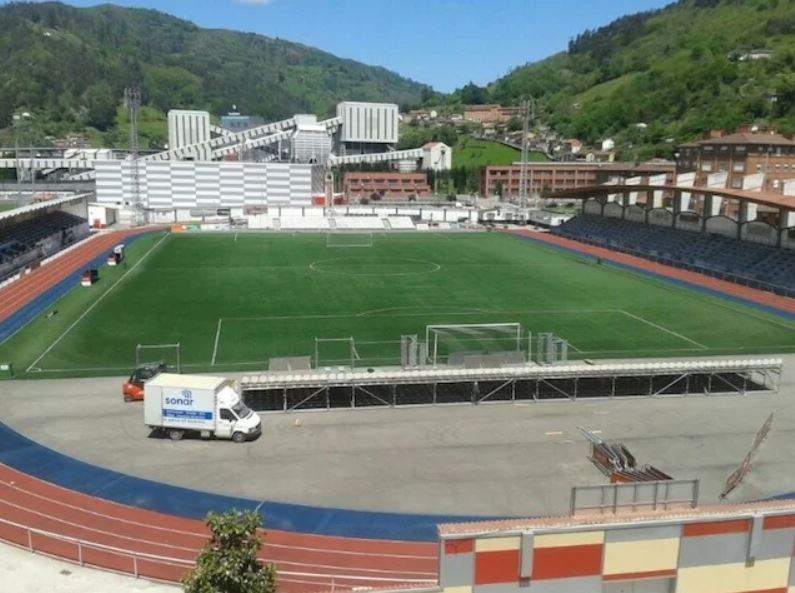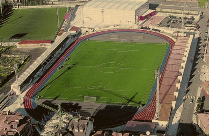 Then in 2007, as part of the town’s urban regeneration, €5.3m was spent on sprucing up the stadium and the area immediately surrounding it. The centrepiece was an elegant stand on the west side that replaced the old terrace. This stand’s roof sweeps in an arc, high above the seven rows of seats below. The roof is suspended by cables that are attached to a series of tall concrete masts at the rear. Between each of these masts are tall, arched screens that allow light to stream through onto the seating deck below. A visually stunning design, but the cover does not offer the best protection against the Asturian rain. Thankfully, some of the money was spent on renovating the old East Stand, installing new seats that increase the overall capacity to 2,940. This can increase to 4,500 when temporary seating is installed in the arcs behind each goal. The cinder track was replaced with a four-lane synthetic track, while the pitch, which was prone to waterlogging, was also replaced with a state-of-the-art artificial surface.