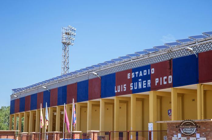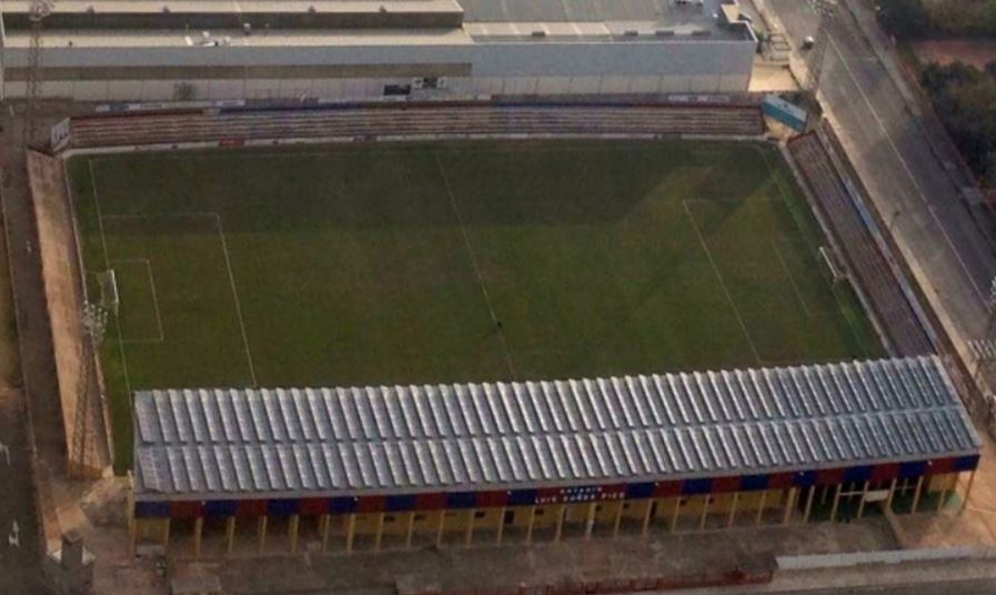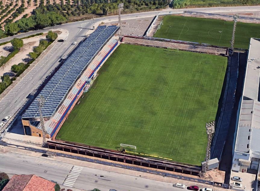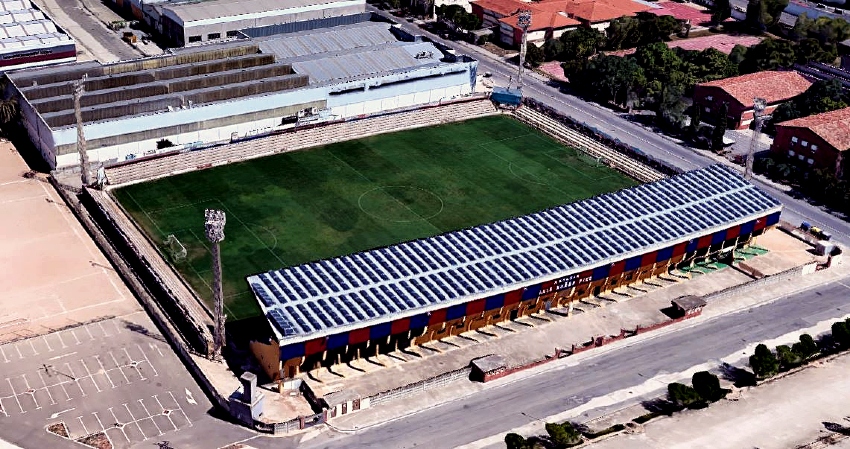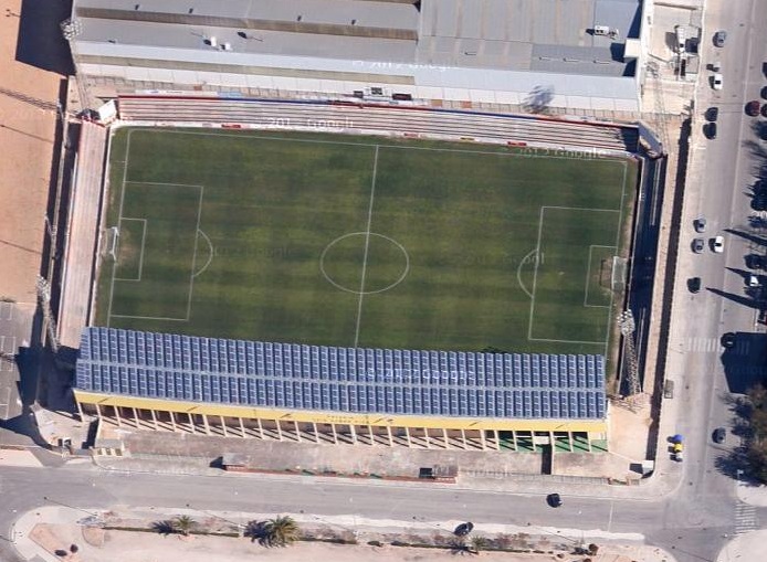 UD Alzira celebrated the 50th anniversary of their home in 2023 with the release of a video that charts the key events during their tenure. The Estadio Luis Suñer Picó is typical of so many stadiums that sprung up in the east and south of Spain in the 1960s & 70s. The focus of this and many other stadiums of this era is a raised, covered stand, whilst the rest of the capacity is made up of simple, shallow terracing. That’s not to say that Alzira’s contribution to the trend is not without its merits, for whilst the rest of the stadium is looking a little dog-eared, the main stand has scrubbed up rather well. Slightly cranked, it houses 5,300 in a single tier that has been filled with bands of red & blue seats. This tier is divided into three sections, with a wide concourse splitting the bands of seats, whilst a line of palcos or individual pens can be found at the rear of the stand. All of this sits under a deep, propped cantilevered roof. This cover has seen the recent addition of solar panels across its entirety, which is a novel way of generating electricity and much need money. Whether this provides the necessary spark to continue the recent improvement in Alzira’s fortunes, remains to be seen.