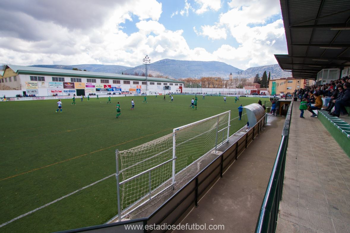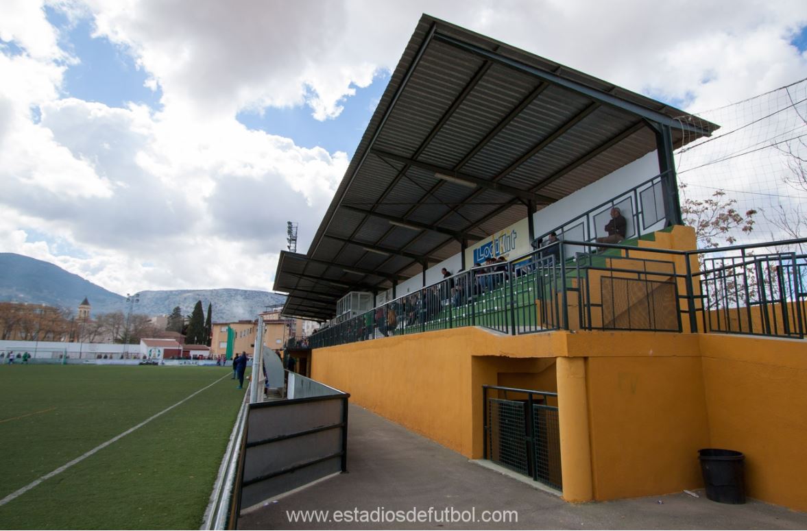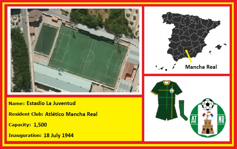La Juventud has hosted football in Mancha Real for nearly 80 years. It’s original lay-out saw the pitch run from east to west, before being rotated 90 degrees in the 1950’s. A short stand with seating above the changing facilities was added in the 1960s. The next major change came in the 1990s, when the municipality built a sports centre along the eastern side of the stadium, essentially enclosing the ground and giving it its claustrophobic feel. The club’s return to the Tercera in 2009 saw the pitch moved 35 metres to the north, the building of a new main stand and the installation of a new artificial surface. La Juventud has a regular capacity of 1,500, the majority of which is housed on the western side where the main stand has 450 green & white seats perched above the changing facilities. Three rows of seats run along the eastern side, uptight to sports centre. Temporary bleachers have been added to the southern end (over a small practice pitch) and northern end, when La Juventud hosted the play-offs and Granada & Athletic Club in the Copa del Rey in 2022.