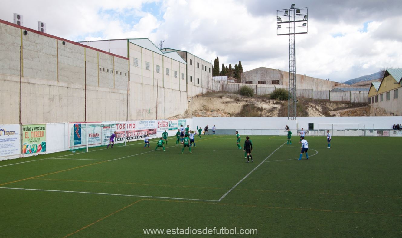 Football arrived in the north east area of Andalucia in the late 1890’s, thanks to British investment in the lead mining industry around the city of Linares. The game soon reached the provincial capital of Jaén, but took a further 25 years to travel the 12 miles east to Mancha Real. Even then, the clubs were informal affairs who were not registered with the local federation. It wasn’t until after the Civil War, when the Falange Española formed a youth team in 1942, that regular football became established in the town. The club, Imperio Azul Club de Fútbol del Frente de Juventudes, moved to a permanent home on 18 July 1944, when the Campo de Deportes Marqués de Villaverde opened. Though greatly changed, this enclosure on the northern edge of town, set among olive groves and next to the municipal park, remains the home of football in Mancha Real.