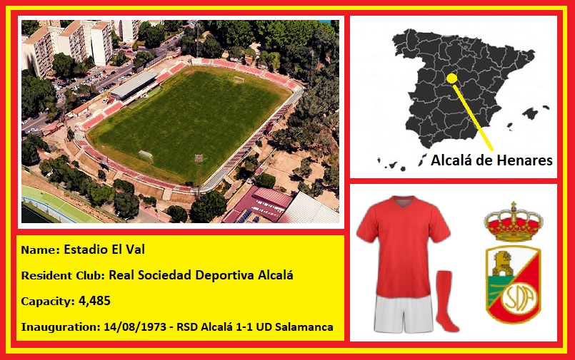 RSD Alcalá was ever-present in the Tercera throughout the 1960s, spending the first few years in the Castellana/Extremadura section, before switching to the Castellana section, which catered mostly for clubs in the general Madrid area. In June 1966, the board of the club decided to sell the land on which the Campo del Humilladero stood to the Municipality. They bought land at Pilar del Campo Clemente for 9,800 pesetas, but carried on using the old ground whilst the municipality developed a sports centre, some 750m to the east on the Avenida Virgen del Val. Quite what happened in the intervening six years to the land at Pilar Campo del Clemente is a mystery, but the club struck a deal with the municipality and the new Estadio Municipal El Val opened its doors for the first time on 14 August 1973. The first match saw RSD Alcalá play UD Salamanca in the pre-season Trofeo Cervantes. At the time of the opening of the new stadium, the club had been back in the Primera Regional Ordinaria for three seasons, with little indication of a return to a higher level. It would take the restructuring of the Spanish pyramid in 1977, which saw the introduction of a new third tier (Segunda B), for RSD Alcalá to climb upwards to the Tercera. The club’s first Tercera title was earned at the end of the 1979-80 season, which paved the way to the club’s most successful period to date.