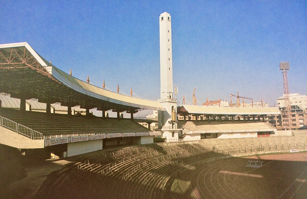 Probably the most recognisable stadium tower anywhere in Spain is the Torre de Maratón at Deportivo’s Riazor stadium. The stadium was built in 1944, just across the road from the old Campo de Riazor. The original layout and the upgrade for the 1982 World Cup allowed spectators an uninterrupted view tower until the present configuration opened in 1998, leaving it stuck rather unceremoniously behind the west stand. You can read more about the Riazor here.