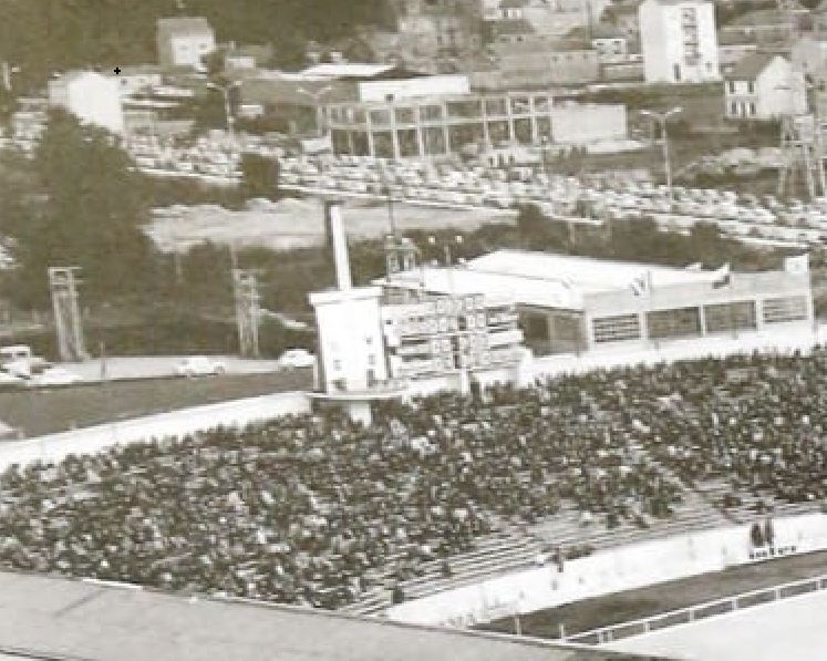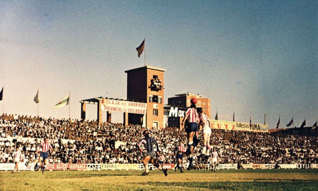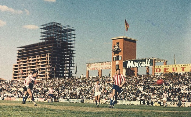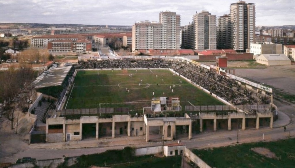 Real Valladolid’s original Estadio José Zorrilla evolved in a rather piecemeal fashion over the forty-two years it served as their home stadium. However, an ever-present feature was the simple neo-classical tower that stood on the stadium’s east side. The tower was partially obscured when a cover was erected over the east terrace in 1974. First XI fixtures ceased at the old ground in 1982, when Real Valladolid moved to the Estadio Nuevo José Zorrilla. The stadium was finally demolished in 1984. You can read more here.