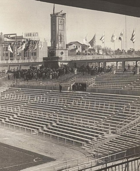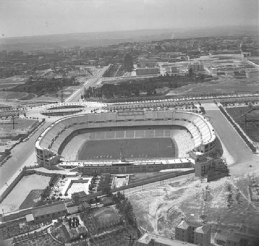This effort from Real Madrid had a very short lifespan. It was situated on the east side of the Nuevo Estadio Chamartin (The stadium was renamed the Estadio Santiago Bernabéu in 1955), which, upon opening, comprised a single tier, due in part to the proximity of the old Campo de Chamartín. Designed by Luis Alemany Soler and Manuel Munoz Monasterio, this neoclassical tower was demolished in 1953, when the east side was extended to include two further tiers. You can view more pictures of the tower and learn about its history here.