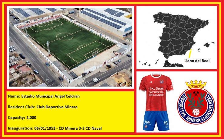 Football has been played informally in Llano del Beal since the beginning of the 20th century; however, it took the formation of CD Llanense in 1927 for the town to have a representative who played competitively. Unfortunately, the club’s formation coincided with the first of many financial crises to hit the local mining community. CD Llanense struggled on for the better part of a decade before the Civil War put an end to the club’s activity. Football continued on an informal basis after the war, then in 1949, the Minera Celdrán SA mining company founded Sociedad Deportiva Minera del Llano. Choosing to play in red shirts and blue shorts, the team’s first home was the Campo La Pobrecita, an open area of land that was just to the northeast of the town, which had hosted matches for around a decade.