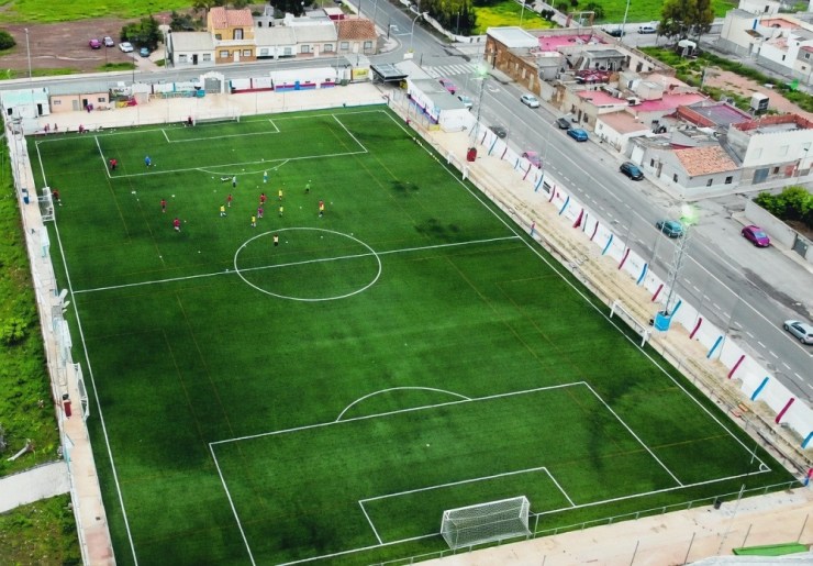 There is no point in dressing this up; the Estadio Municipal Ángel Celdrán is extremely basic, but the fact that it shares a stage with stadiums that cost millions of euros is one of the crazy charms of Spain’s semi-professional leagues. Also, let me be absolutely clear, Minera’s home has soul. The soul of the club and the local community are embedded within its DNA. Something you can’t say about some soulless, out-of-town arena that has been paid for by a billionaire or state-funded sponsorship. Upon opening in 1953, the enclosure consisted of a sand-lime pitch, changing facilities in the southeast corner and a boundary wall. In the mid-1970s, a grass pitch was installed, and a concrete wall was added to separate spectators from the playing surface. Four rows of steps were added to the western end, whilst two steps of terracing ran along the southern side. An expanse of hard standing was laid behind the eastern goal, and the changing rooms were expanded. Anybody returning to the ground after a 50-year absence would find today’s layout immediately familiar. Sure, there are four floodlight pylons, and the grass has been replaced with artificial turf. The only concession to comfort is the installation of rows of red and blue seats at the western end. This was part of a €230,000 makeover in advance of Minera’s debut in the Segunda Federación, which also saw the installation of a new artificial surface, and upgrades to the lighting and changing facilities.